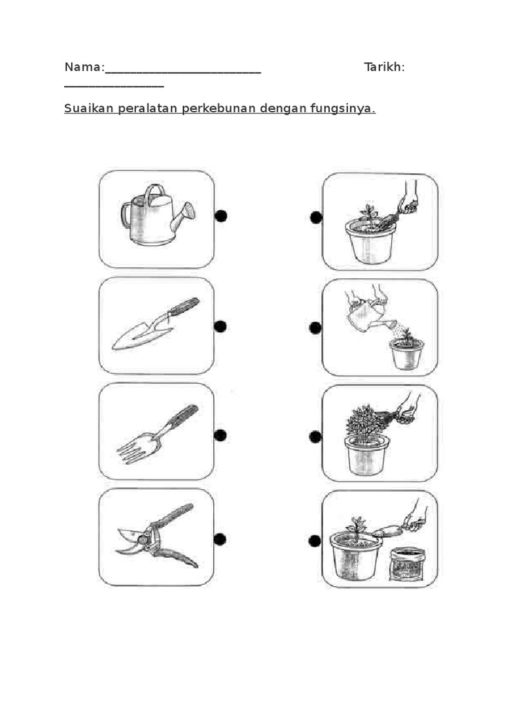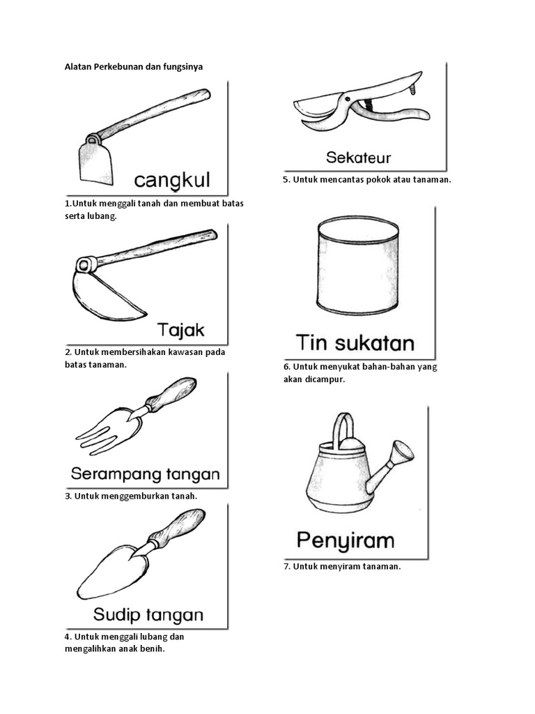 Lembaran kerja murid mengenalpasti alatan perkebuan mengenal alatan perkebunan fungsi alatan perkebunan keselamatan aktiviti mewarna mencari perkataan. Lembaran kerja mewarna alatan perkebunan. Aktiviti ini amat sesuai dalam proses untuk mengenal alatan perkebunan.