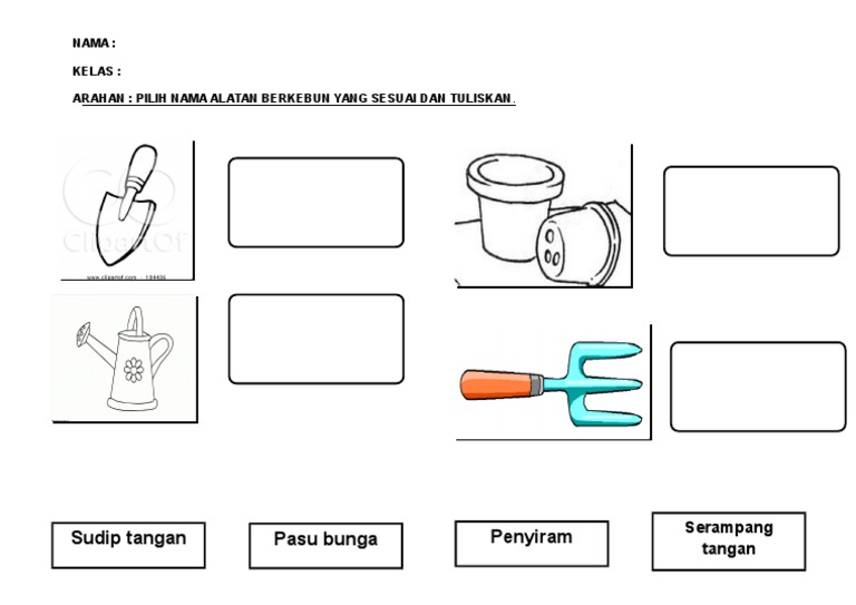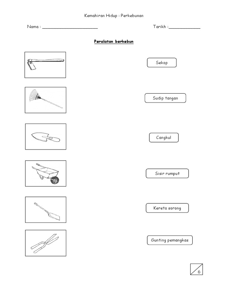 Catatkan jumlah sudu air ke dalam jadual lembaran kerja 1 8. Semasa aktiviti ini guru perlu bertanya nama alatan tersebut dalam proses murid untuk mengingat nama alatan tersebut. Lembaran kerja mewarna alatan perkebunan.