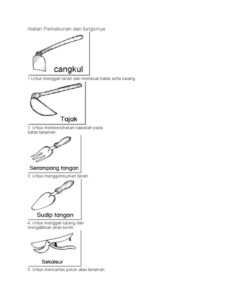 Lembaran kerja mengenal fungsi alatan perkebunan. 1untuk menggali tanah dan membuat batas serta lubang. Destiny Auto Sdn Bhd Knight Auto Sdn Bhd in Sela.